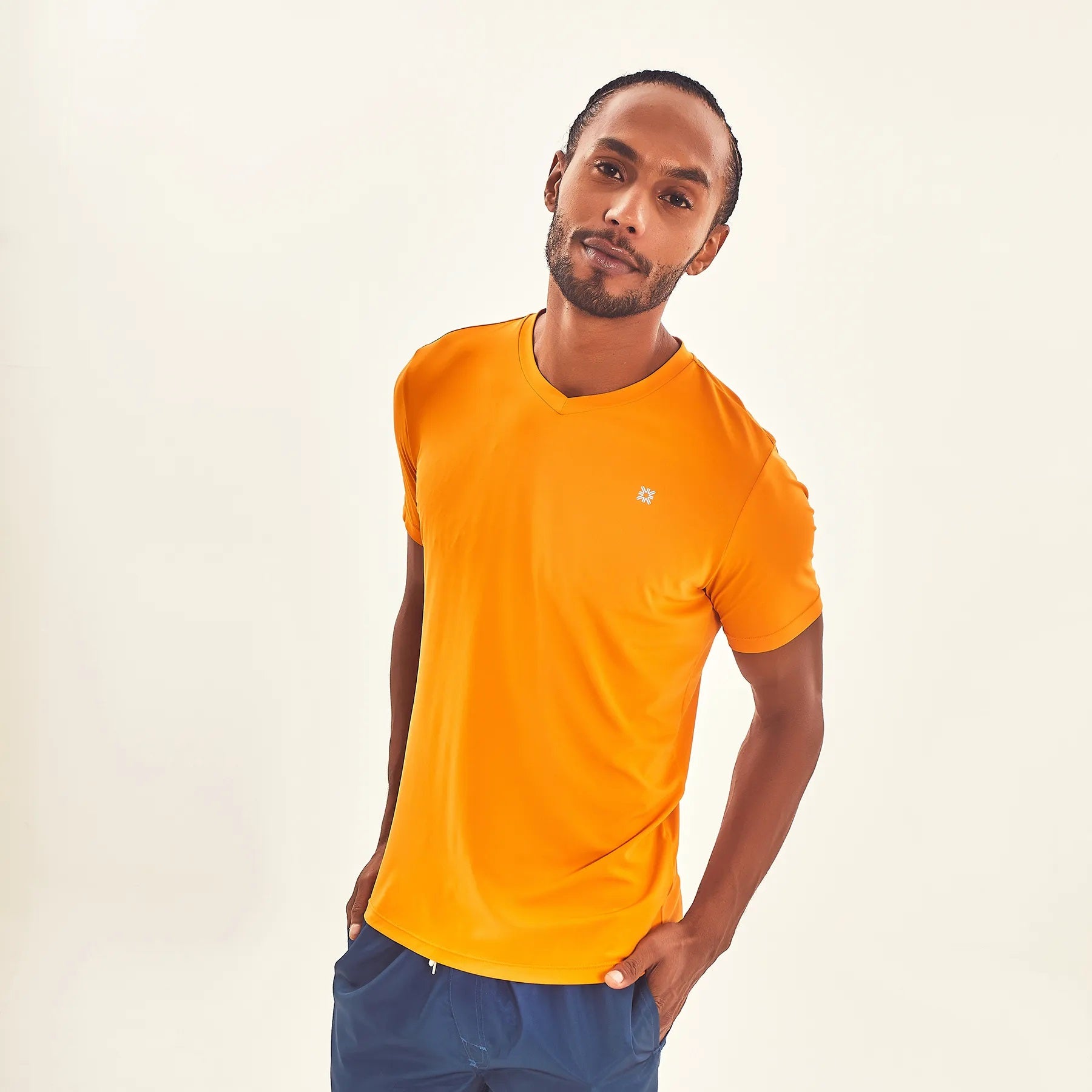 • Load image into Gallery viewer, Model Front: Uv Line T-Shirt Pour Homme T-Shirt Sport Fit Orange Upf50+