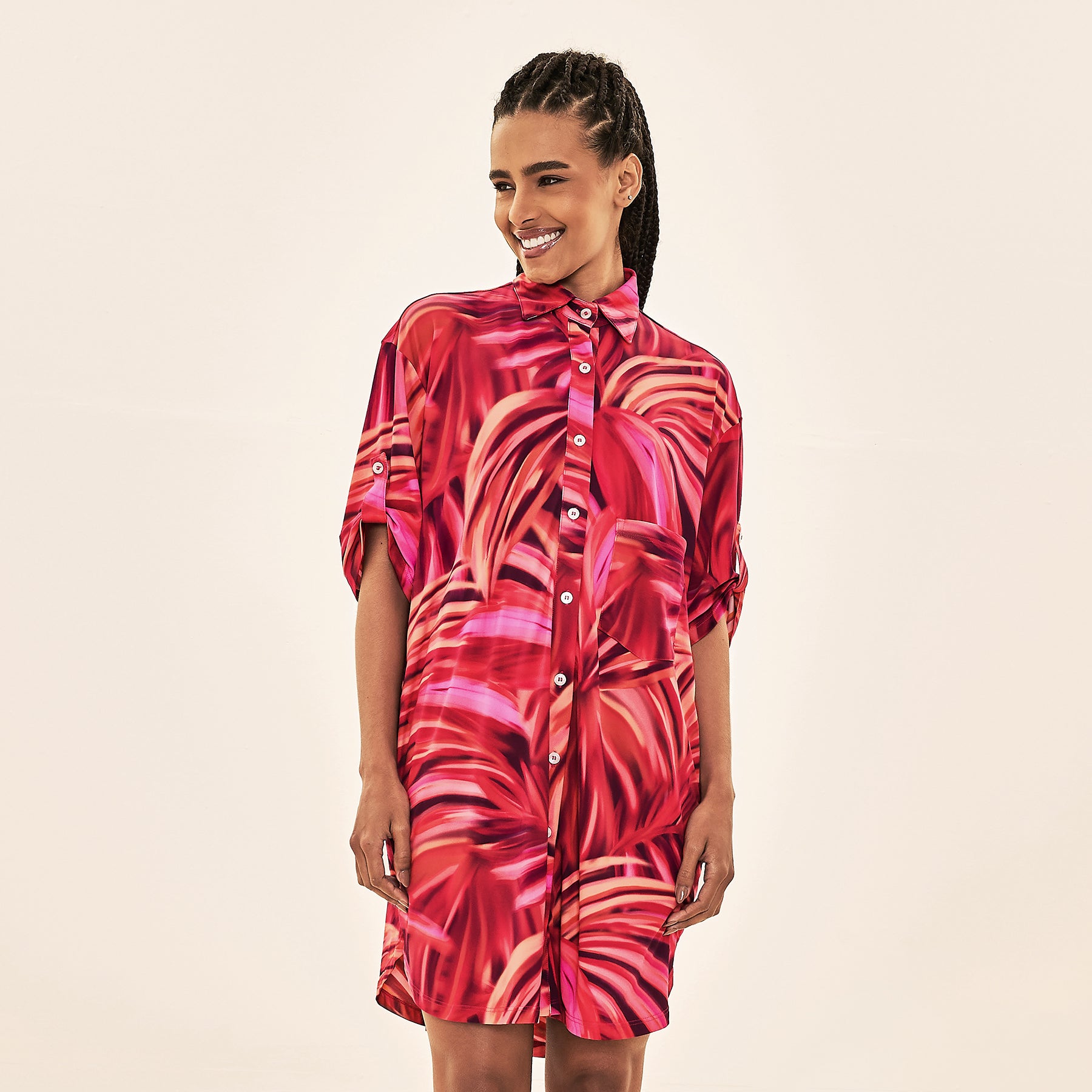 • Load image into Gallery viewer, Model Front: Uv Line Chemise Shirtdress Copacabana Upf50+